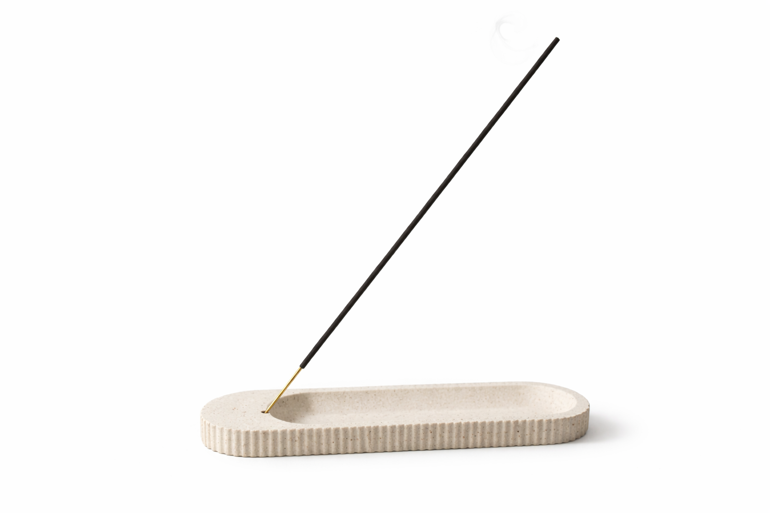 Le support incliné permet de recueillir les cendres proprement dans la base allongée. Un design fonctionnel et sobre.