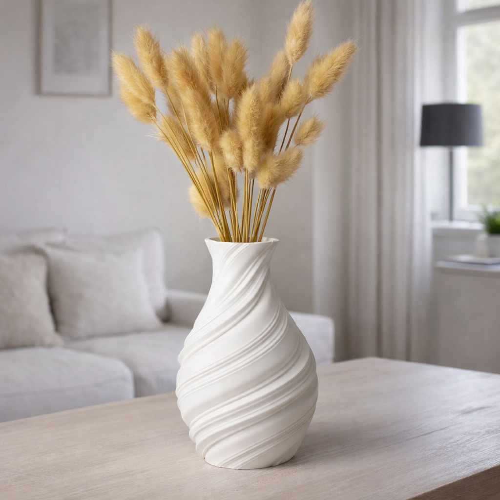 Die Alora Vase vereint weiche Linien mit skulpturaler Dynamik.