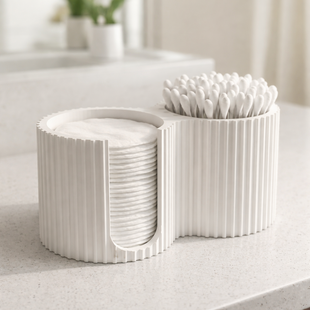 Der AMORA Behälter vereint Funktionalität und elegantes Design. Ideal zur übersichtlichen Aufbewahrung von Wattepads, Wattestäbchen oder kleinen Hygieneartikeln – stets griffbereit und ordentlich verstaut.